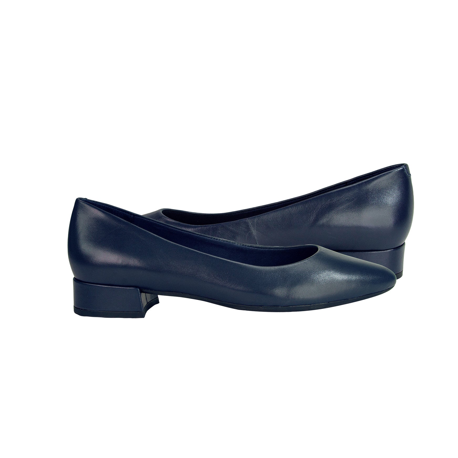 Navy Blue Leather Block Heel Pumps