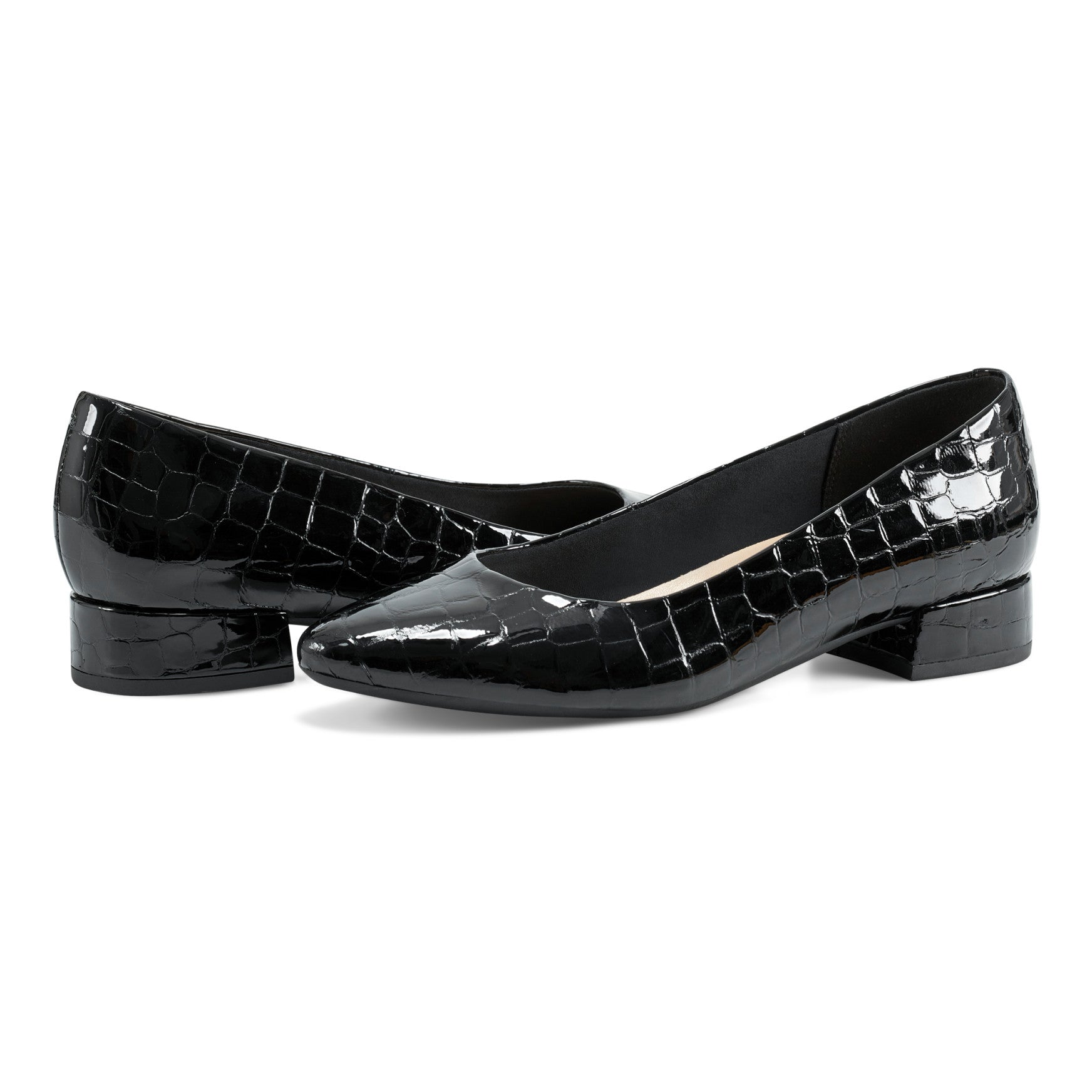When comfort and polish come together, you get a dress pump you'll actually want to wear. eFlex Technology anchors every step in the Caldise, a low-heel dress pump designed with arch support, flexibility, and responsive cushioning built right in. The sleek pointy toe and low block heel give you just enough height to feel polished without the pain, while the slip-on design makes mornings easier. A croc-embossed patent finish adds texture and dimension, and the smooth leather versions bring timeless versatility to your closet.