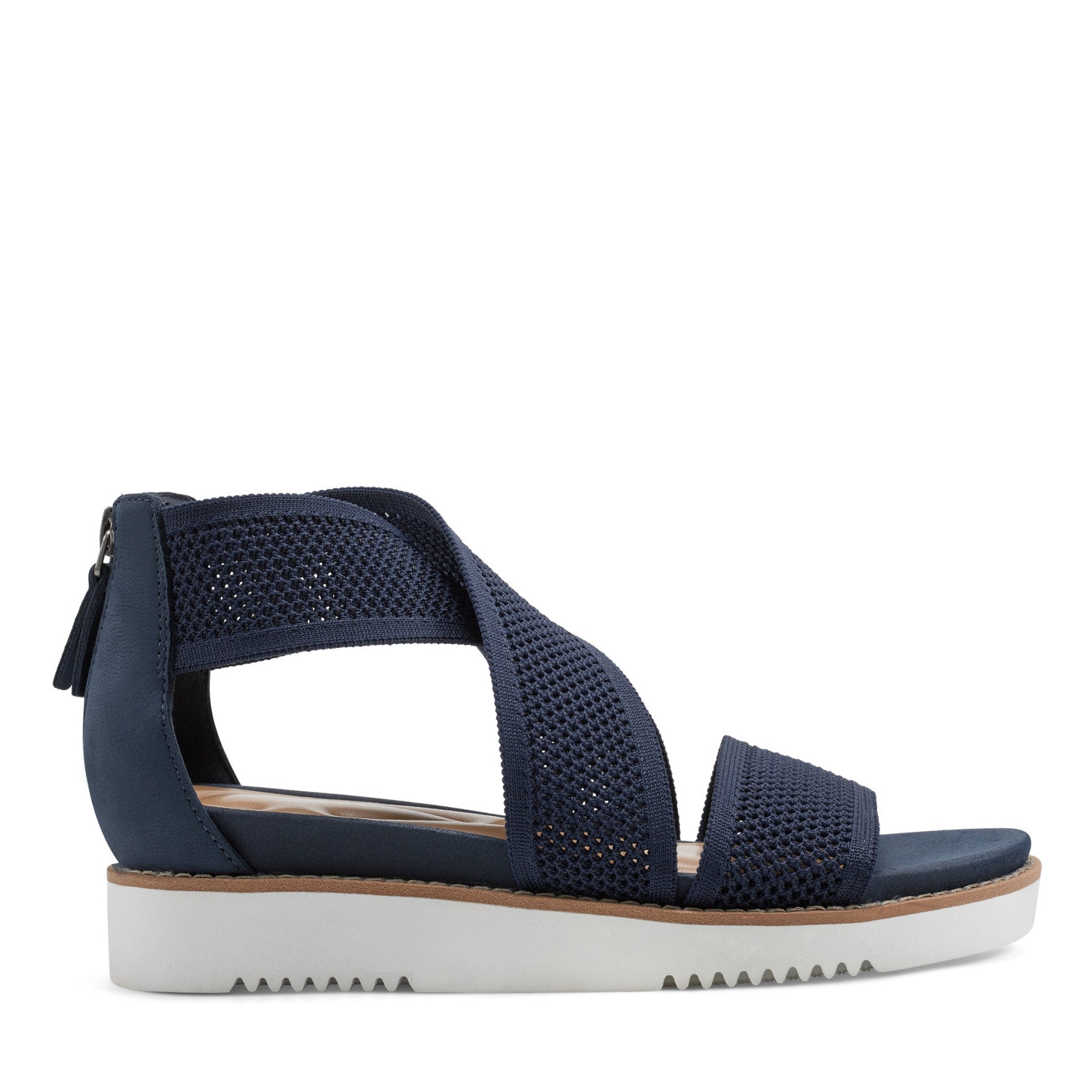 Some of the best summer sandals are the ones that disappear underfoot, letting you forget you're wearing shoes at all. The Wander is built on that principle. It's an ultra-lightweight strappy sandal designed with a crossover knit upper that wraps the foot in airy texture. The back-zip closure delivers easy on-and-off access, while smooth leather trim at the heel adds a subtle finish. Set on a low-profile platform sole with visible tread, it's a sandal that keeps things carefree without skimping on support.