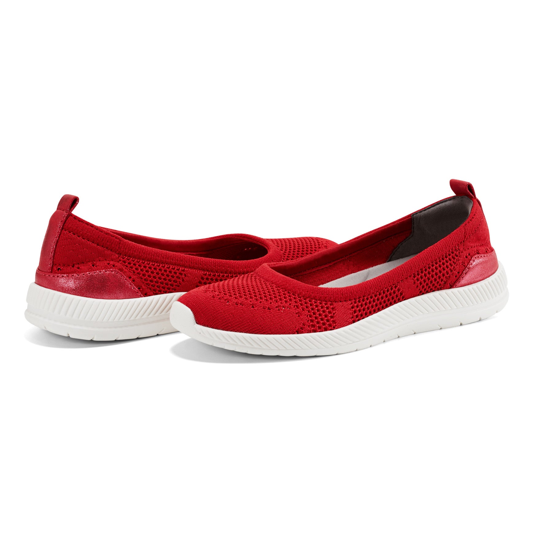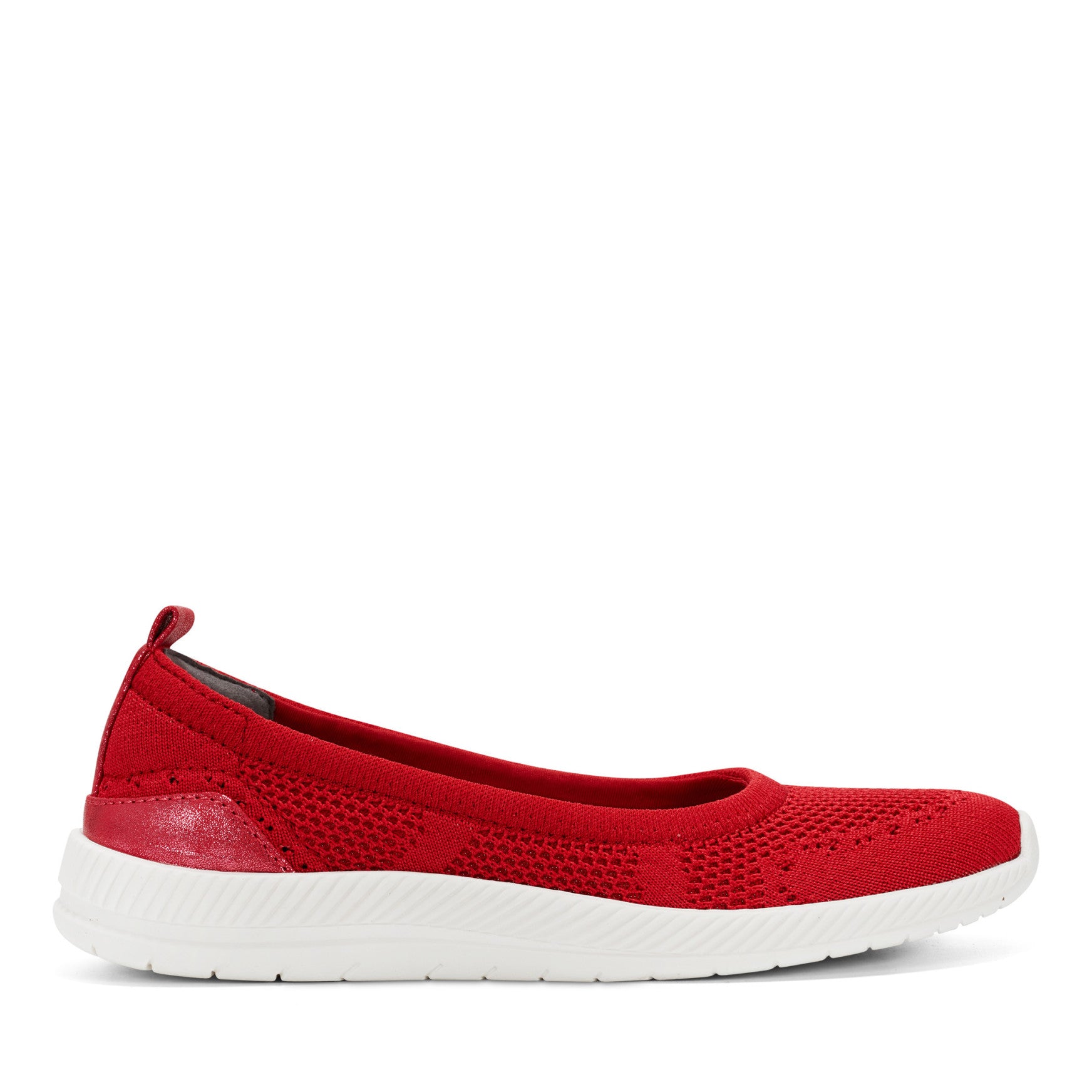 A pull-on flat that delivers sneaker-level ease with a refined silhouette, the Glitz features an engineered knit upper with subtle shimmer detailing woven throughout the texture. A rounded toe shape gives your foot plenty of room to spread naturally, and the sturdy pull tab at the heel makes it easy to slip on without bending down. The lightweight molded sole provides reliable traction underfoot, while the streamlined profile keeps things clean and polished. Built with a cushioned footbed that includes supportive arch contouring, this orthotic-friendly style lets you customize your fit by swapping in your own insoles. A stretchy topline adjusts to your foot's shape for a comfortable, secure hold that doesn't pinch or gap. Available in medium and wide widths.
