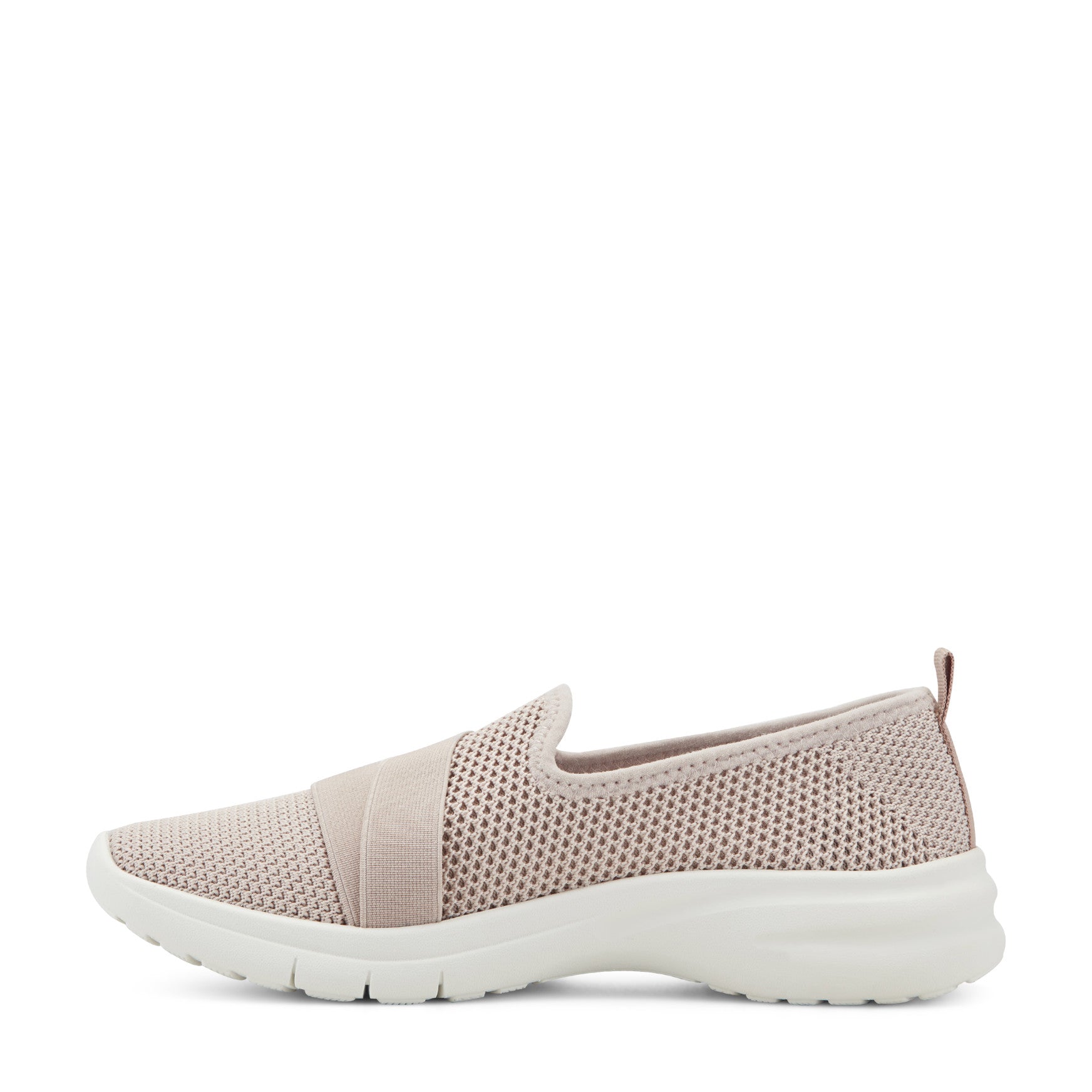 A slip-on walking shoe that feels as light as it looks, the Keyla is built for women who don't slow down. The textured knit upper wraps your foot in a sock-like fit, while dual elastic bands secure everything in place without pressure points or fuss. A pull tab at the heel makes slipping in effortless, and the lightweight construction keeps your stride easy from morning errands to evening plans.