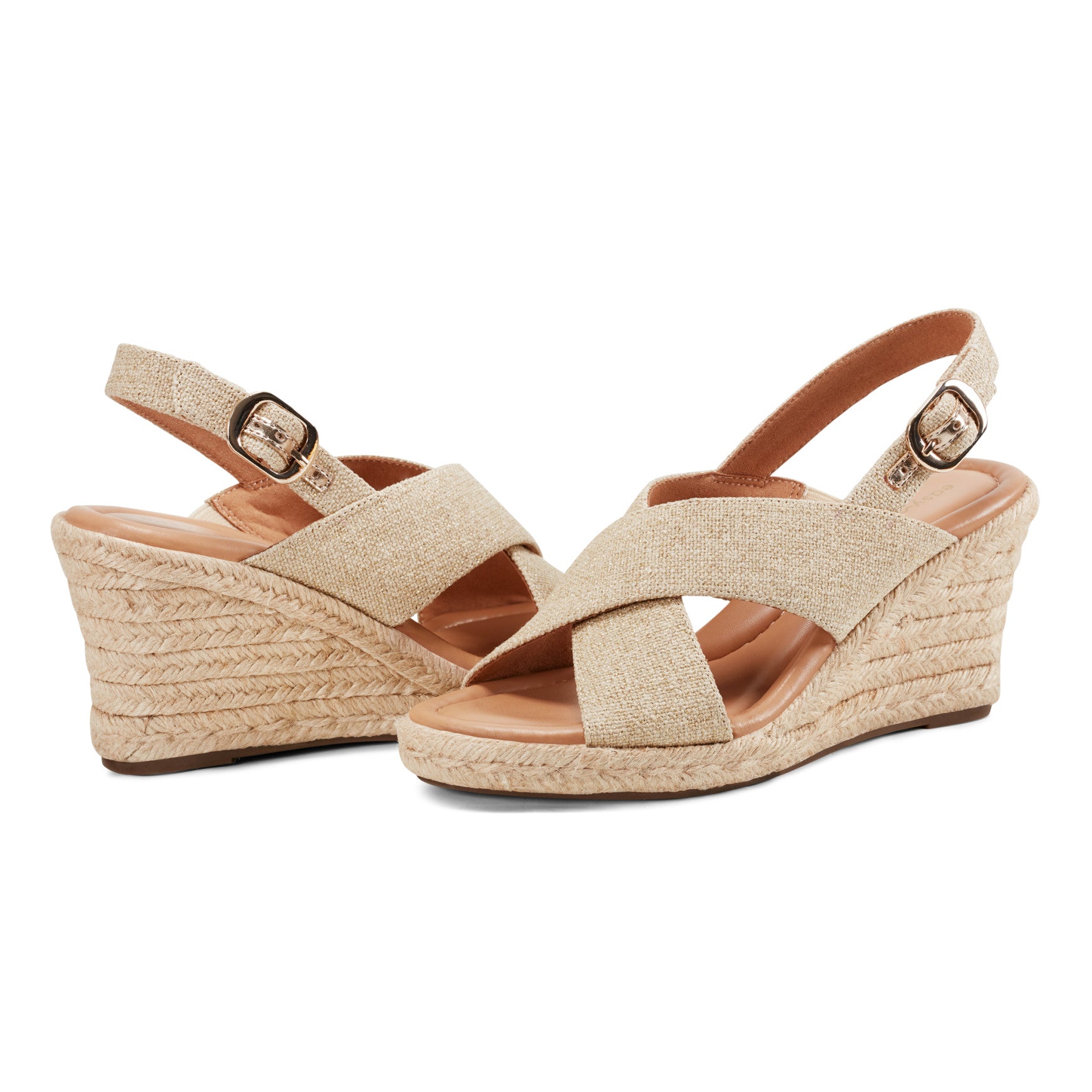 When summer calls for a slingback that works as hard as you do, reach for the Ariane. A wedge sandal designed with crisscross textile straps and an adjustable buckle closure, it brings together walkable height and all-day ease. The woven upper offers texture and dimension, while the jute-wrapped wedge gives you the lift you want without sacrificing stability. It's the kind of sandal that carries you from morning errands to evening plans without a second thought.