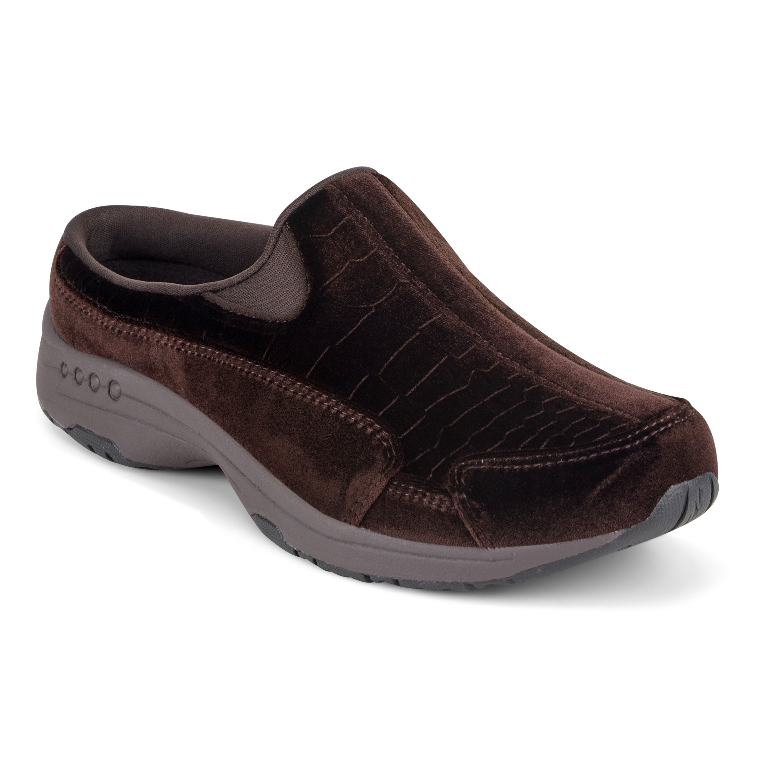 The Traveltime clogs are perfect for walking and light activity. These comfort shoes are easy to slip on and off, plus their removable sock liners absorb shock and provide superior arch support for comfort all-day, into-the-evening. Traveltime is one of Easy Spirit's most loved clogs for women.